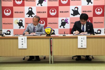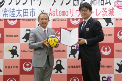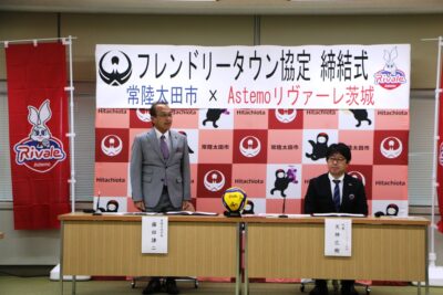 常陸太田市とAstemoリヴァーレ茨城とのフレンドリータウン協定締結式が、常陸太田市役所にて開催されました。