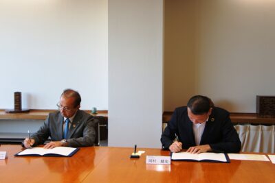 今回の協定概要の確認を行った後、代表取締役の岡村健史社長と自分との二人により、協定書2部にそれぞれ署名を行い締結を交わしました。