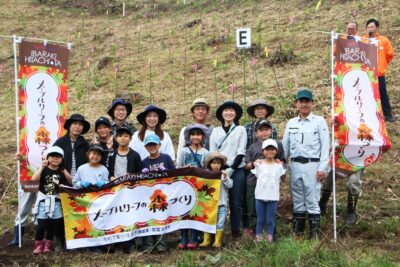 今回のエリアは若干傾斜地でありましたが足元に注意をしながら、参加者全員でサトウカエデ200本、イタヤカエデ100本を無事、植樹することができました。