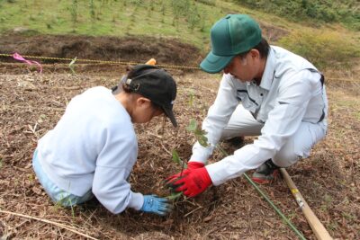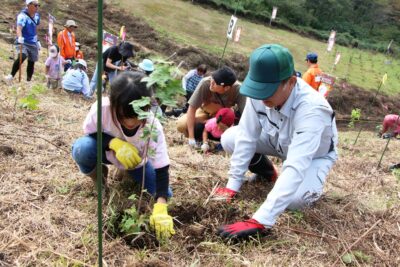 子どもさんの中には、慣れた手つきの複数回参加の子もいれば、初めての参加にも関わらず、直前に教わった指導の通り丁寧に植樹する子など、皆さんとても手際よく予定時間より早く作業を終えることができました。