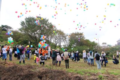 植樹後は、苗の成長を願ってバルーンリリースや記念撮影を行い、昼食後もステージイベントやクラフト・お箸づくり・丸太切りなどの体験等、ワークショップを楽しみ、思い出の1日となったことと思います。