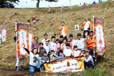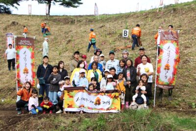 大塚製薬㈱様と明治安田生命保険(相)様との包括連携協定事業の一つである「第4回メープルリーフの森づくり」が、「プラトーさとみ」において実施されました。
