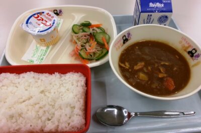 今日のメニューは、チキンカレーライスと大根サラダ、ヨーグルト、牛乳でした。地産地消にこだわり、地元のお米や野菜をたくさん使用した給食はとっても美味しく、職員との話題も盛り上がり、楽しい時間を共有することが出来ました。