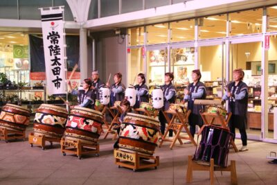 本市を代表する、天神ばやし保存会の皆さんによる、勇壮な太鼓でお出迎えを行い、