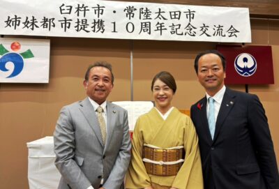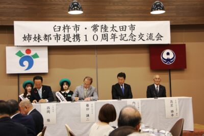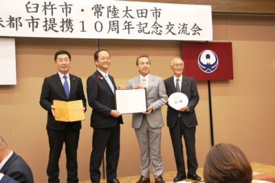 常陸太田市と姉妹都市提携10周年を迎える、臼杵市の西岡市長と内藤議長が本市役所に来庁されました。