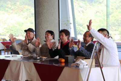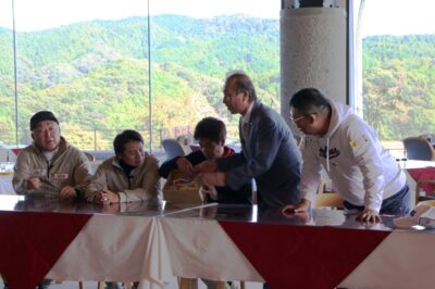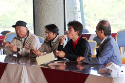 9月から数回にわたり市内ゴルフ場で収録が行われ、最終回となった今日は、元体操選手の池谷兄弟と、お笑いタレントのカミムラさんとフレサワさんの4名が、実際に当コースをラウンドされ、プレー後にレストランでお会いし、常陸太田市の特産物であるチーズ(カチョカヴァッロ・ストリング)や星霜柿などを試食して頂くと共に、本市の魅力をPRさせて頂きました。