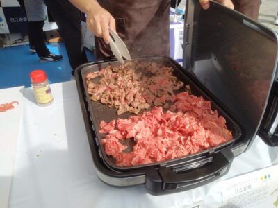 常陸太田市のブースでは「なごみ屋のおでん」の他、「岡部酒造の日本酒」、「益子米穀の新米」が出展されていて、他のブースでは宮崎県日之影町の「宮崎牛の焼肉」などが人気を集めていました。