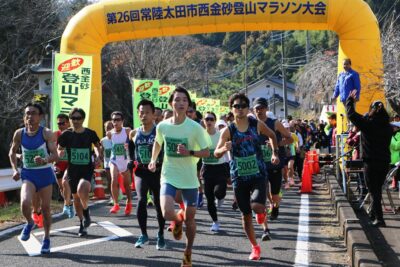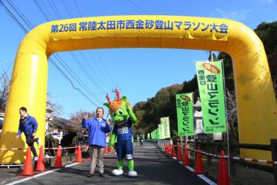 第26回常陸太田市西金砂登山マラソン大会が、水戸ホーリーホックのホーリーくんが応援に駆け付ける中、秋晴れの爽やかな天候の下で開催されました。