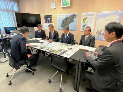 常陸太田市においては、「里川・田渡地区改修工事の進捗及び霞堤の保全」と「久慈川下流域における流下能力の向上と堤防整備」について、霞堤の保全・有効活用や、河道掘削等の治水対策と堤防の整備、固定式配水ポンプ場の建設に向けた整備に必要となる予算の確保等について支援をお願いしました。