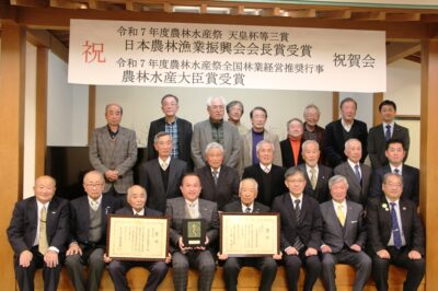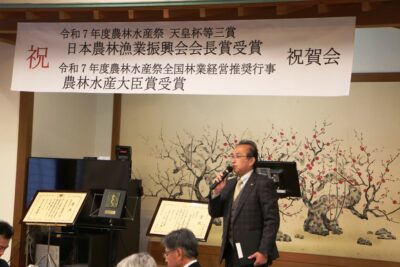 また夕刻からは、昨日市役所に令和7年度農林水産祭 天皇杯等三賞受賞の報告に来訪頂いた、常陸太田市森林組合の受賞祝賀会が開かれました。