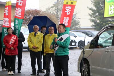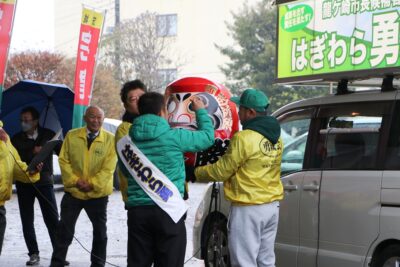 寒い中での1週間の選挙戦となりますが、是非寒さを吹き飛ばすかのような熱い戦いで、圧勝されることを祈念しています。