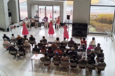 今月は「宝珠戸弘&レイ・オブ・スターズ」の皆さんによる、ハワイアンバンドとフラダンスが披露されました。