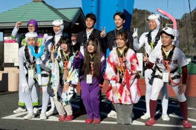 ロビーでは式典に先立ち1月4日に、常陸太田市恒例の「二十歳記念バンジージャンプ」に挑戦した10名の勇士が、