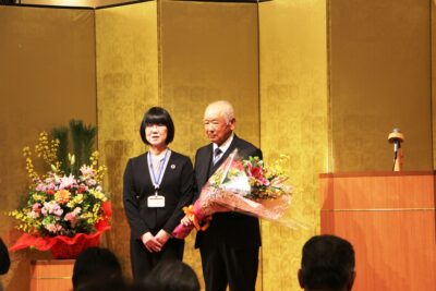 また、昨年農林水産祭天皇等三賞の一つである「日本農林漁業振興会会長賞」を受賞された「常陸太田市森林組合」の白石理事長に花束が贈呈されました。