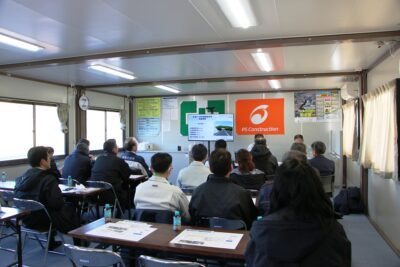 当市の市道0139号線整備推進課と、県の常陸太田工事事務所、更には工事を担当しているピーエス・コンストラクション㈱、それぞれの担当者から、事業概要や工事概要について資料やドローン映像を用いながら説明して頂きました。