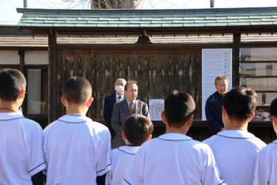 監督はじめ指導スタッフ、並びに中学1・2年生の選手全員で今年1年の必勝を祈願しました。