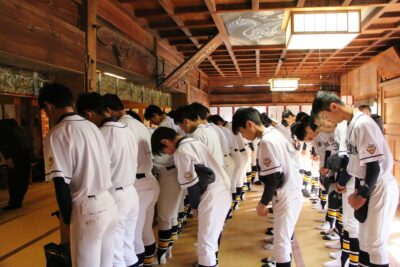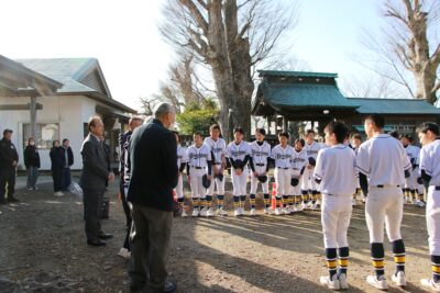 選手一人ひとりに、若宮八幡宮の必勝お守りを手渡しながら、60年に一度の干支である「丙午」の活力と勢いをエネルギーに、常陸太田リトルシニアの更なる飛躍の年となることを願っています。