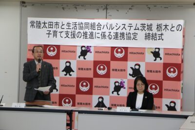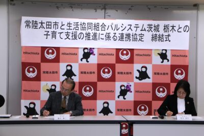 午後からはパルシステム茨城栃木と常陸太田市による「子育て支援の推進に係る連携協定」締結式が行われました。