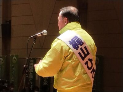 梶山候補からは、10期目の挑戦となるものの、皆さんに育てて頂いてここまで来られたという原点回帰の想いで緊張感と使命感を持って戦っていく旨、強い決意が述べられました。