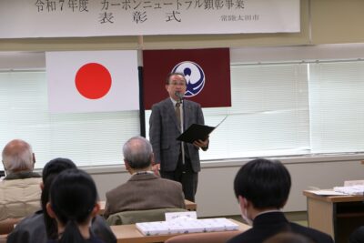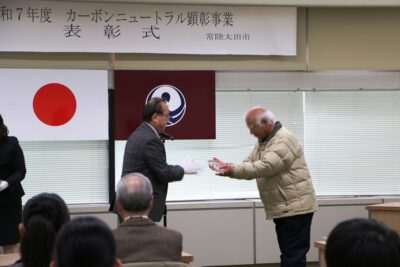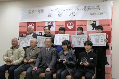 令和7年度カーボンニュートラル顕彰事業の表彰式が市役所にて行われました。