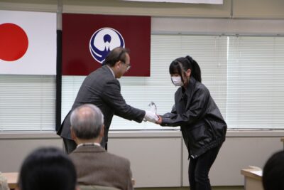 今年度は活動部門に1団体、作品部門に一般市民3名、小学生3名、中学生3名の計9名が受賞され、トロフィーや賞状を授与致しました。