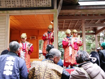 この祭事は、嵐などの災いを防除し豊作や豊漁を祈願し奉奏されるもので、昭和35年に県の無形民俗文化財に指定され、昨年11月には文部科学大臣から、文化財の保護と継承に尽力し、地域文化の振興に貢献されているとの功績が評価され、「地域文化功労者表彰」を受賞されています。