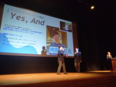 大ホールでは、12のグループによるパワーポイント資料を使ったプレゼンテーションが行われました。