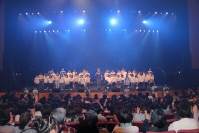 そして15時からは大ホールで「マシコタツロウ・ワンマンライブ」が、2部構成で実施され、地元のダンサーはじめ太田一高のダンス部やシニアダンスチーム、里美中学3年生とのコラボ、峰山小の児童や天神ばやし保存会の皆さんとの「和太鼓と洋楽器との融合」、更にはフィナーレを飾った小学生との「空があるまち」大合唱など、まさに「つながる手と手、心と心」のテーマを体感することができた感動のライブでした。満席となった1,000人の観客の皆さんも、私同様に最高の盛り上がりで充実した3時間であったと思います。