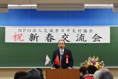 その前後の時間帯は、水戸市において11時から「茨城県日中友好協会・新春交流会」に出席し、「パンダと国際交流」と題した基調講演を拝聴すると共に、