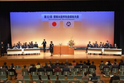 また13時からは金砂郷の「交流センターふじ」を会場に、「第52回常陸太田市社会福祉大会」が開催され、永年にわたり社会福祉活動にご尽力頂いた個人や団体の皆さんに、表彰状や感謝状が贈られました。