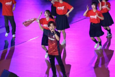 試合開始前にはコート上において、滝教育長と共に常陸太田市の日のPRをさせて頂くと共に、