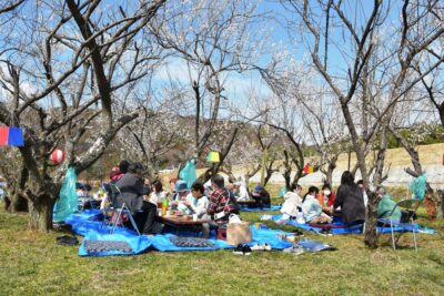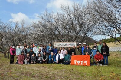 町内にある「大和久後の梅畑」を会場に、梅香る木の下で「いも煮やキノコ飯」を食しながら地域の皆さんが楽しく交流を深めていました。