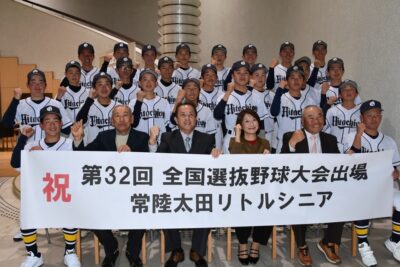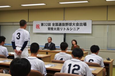 3月25日から大阪で開催される「第32回全国選抜野球大会」に出場する、常陸太田リトルシニアの選手やスタッフ、保護者の皆さんが、本日夕方、市長表敬訪問に来庁されました。