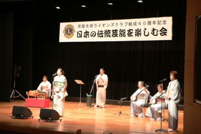 常陸太田ライオンズクラブ結成60周年記念事業として、「日本の伝統芸能を楽しむ会」が生涯学習センターふれあいホールで開催されました。