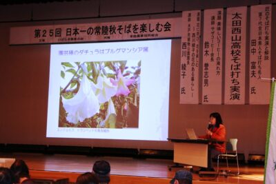いばらき蕎麦の会主催による「第25回日本一の常陸秋そばを楽しむ会」が、「交流センターふじ」にて開催されました。