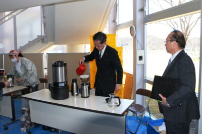 更に本市の「常陸秋そばリブランド協議会」メンバーとしてもご尽力頂いている、鈴木会長さん自らがお湯を注いで淹れたて「サザコーヒー」を提供して頂くなど、来場された皆さんも至福のひと時を過ごしていました。