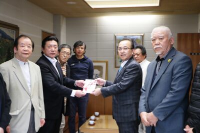 また夕方には「常陸太田のおそば屋さんの会」役員の皆さんが、昨秋実施された事業のチャリティ金を市へ寄附して頂ける目的で来庁して下さいました。