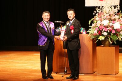 私も当クラブのメンバーの一人でありますが、地元市長として、高齢者の地域交流促進事業や青少年健全育成事業、支え合いや認め合う心を育む活動、献血や献眼など人々の命を支える社会貢献活動など、歴代会長をはじめ会員の皆さんの献身的な努力と高い志により、地域からの信頼を築かれ、60年という輝かしい歴史を積み重ねてきた実績に心からの敬意と感謝の意を込め、祝辞を述べさせて頂きました。