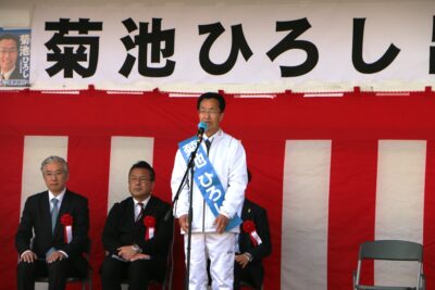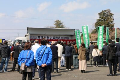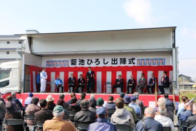 下妻市長選挙が告示となり、現職で3期目を目指す「菊池ひろし」候補の出陣式に激励に伺いました。 会場には多くの市民、団体など支援者の皆さんが参集し、 県内各地から首長の同志も応援に駆けつける中、 菊池候補の3期目に向けた熱い想いと共に、会場が一体となり必勝に向け士気を高め合いました。 遊説カーに乗り込み1週間の選挙戦がスタートとなりました。 29日の投開票日には、同会場にて当選祝いが挙行できることを願っています。