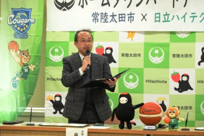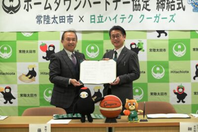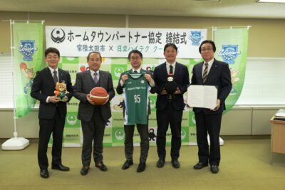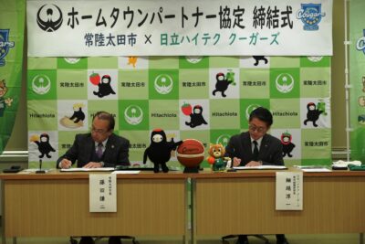 ひたちなか市を拠点にWリーグで活躍している、女子バスケットボールチームである「日立ハイテク クーガーズ」と、常陸太田市との間で、ホームタウンパートナー協定を締結しました。