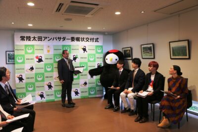 昨年の市長就任に当たり、公約に掲げた施策の一つである「常陸太田アンバサダー」の委嘱状交付式を行いました。