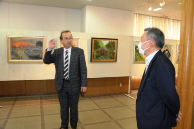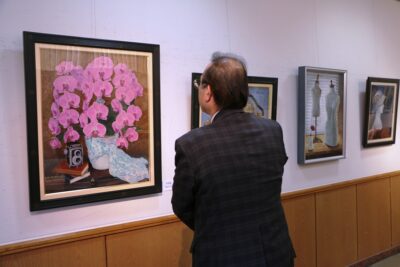 常陸太田市生涯学習センターを会場に、油絵グループ「和の会」メンバー5人による、初めての絵画展が開催されています。