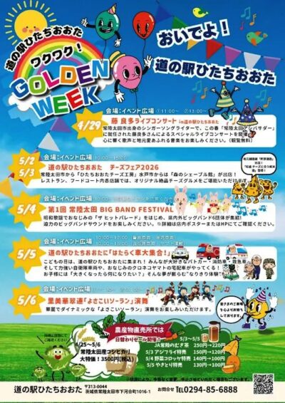 「道の駅ひたちおおた」でも、GW期間中はイベント広場の催し物や、直売所コーナーでの特別販売などが開催されています。