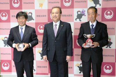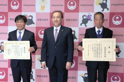 常陸太田市内で「水稲」や「そば」を栽培しているお二方が、大臣や県知事等から栄えある表彰を受賞され、市長室へ報告にお越し頂きました。